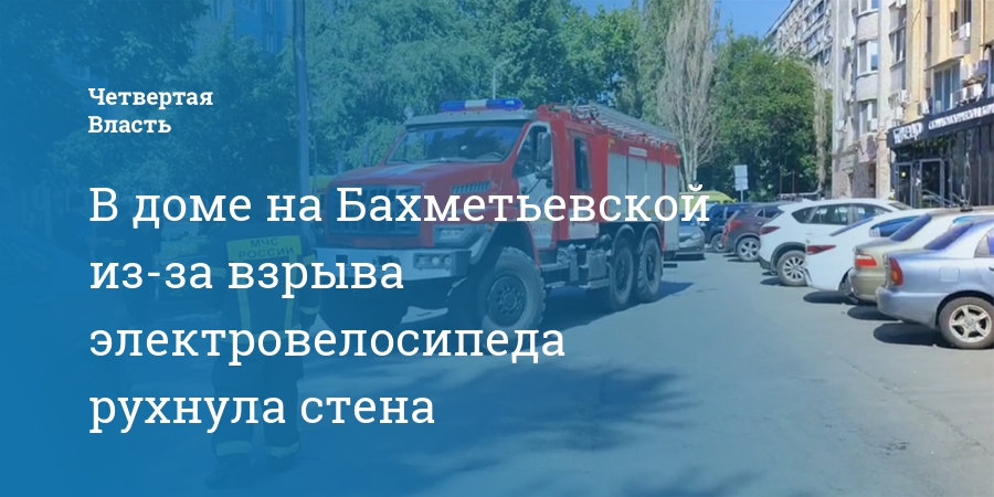 По официальным данным, ЧП произошло в доме №33 по улице Бахметьевской. От взрыва электровелосипеда рухнула межквартирная перегородка, после чего произошло возгорание.