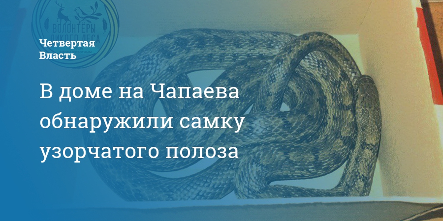 Змея заползла в частный дом, расположенный на улице Чапаева в районе Глебоврага. Непрошенная гостья перепугала людей, однако на деле оказалась неядовитой самкой узорчатого полоса. Как полагают волонтеры, она решила, что зимовка в человеческом жилье пройдет лучше, чем на улице.