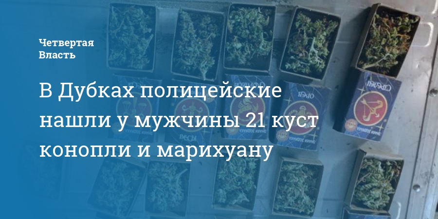 В Дубках на приусадебном участке гражданина правоохранители обнаружили 21 куст конопли. Кроме того, в доме полицейские нашли банку с неизвестным веществом растительного происхождения. Анализ показал, что 44,49 грамма зеленой смеси являются марихуаной.