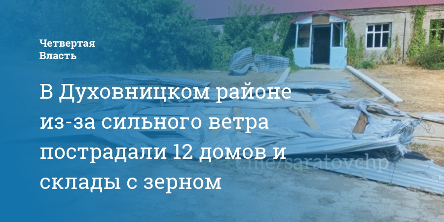 В Духовницком районе из-за сильного ветра пострадали 12 домов и склады с зерном