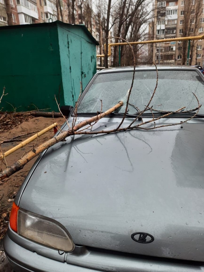 В Елшанке упавшая ветка насквозь пробила лобовое стекло легковушки