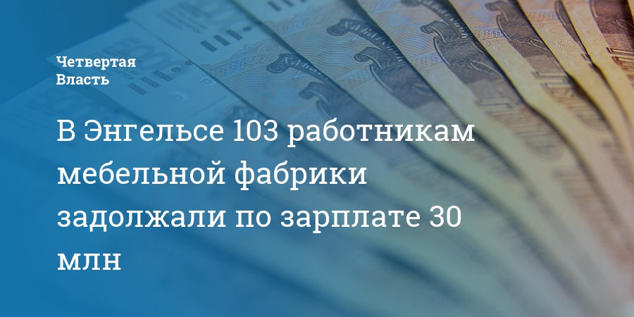В Саратовской области Энгельсская мебельная фабрика задолжала 103 работникам 30 млн рублей по зарплате. Об этом сообщает Государственная инспекция труда.
