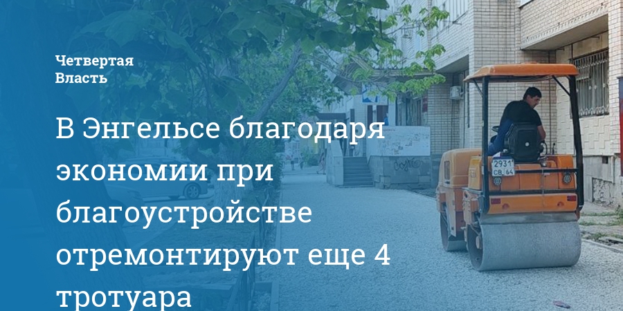 В Энгельсе Саратовской области на сэкономленные средства из областного бюджета отремонтируют еще четыре тротуара. Об этом сообщил глава района Дмитрий Плеханов в своем телеграм-канале.