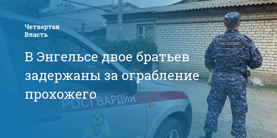 В Энгельсе Саратовской области двое братьев задержаны по подозрению в ограблении 22-летнего прохожего. Найти злоумышленников оперативно удалось сотрудникам Росгвардии.