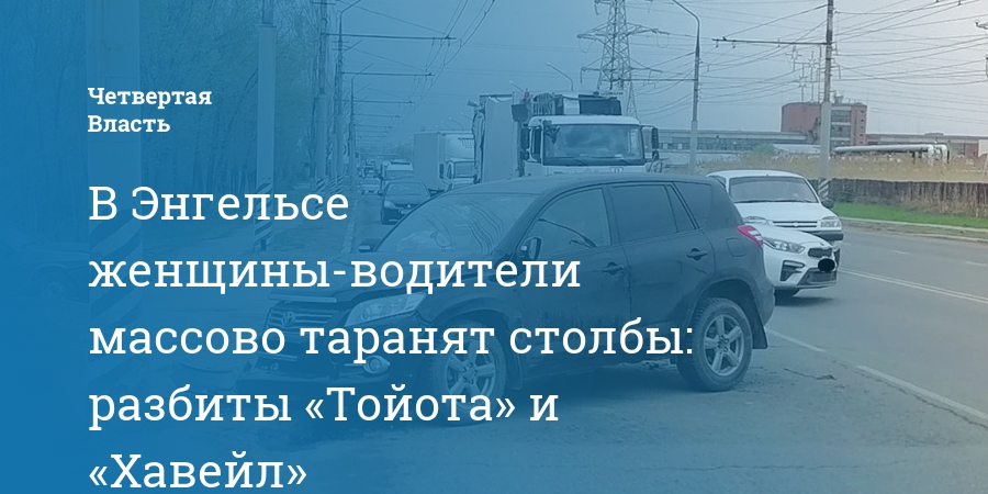 В Энгельсе женщины-водители массово таранят столбы: разбиты «Тойота» и «Хавейл»