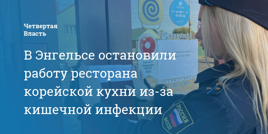 В Энгельсе Саратовской области судебные приставы на 17 суток приостановили работу ресторана корейской кухни из-за кишечной инфекции. Такое решение принял суд после получения сведений о 17 случаях заболевания кишечной инфекцией среди посетителей заведения. Информацией об этом поделились в региональном управлении Федеральной службы судебных приставов.
