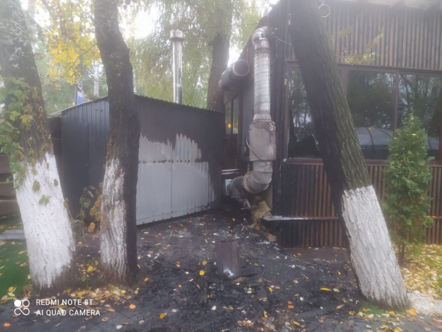 Вызов о пожаре на улице Трудовая, 2 Б зафиксировали в 6.22. Огонь охватил металлическую пристройку и стену бара «The Сад Terrace». Пламя распространилось на площади 14 кв м. На тушение огня выезжало 2 пожарных расчета.