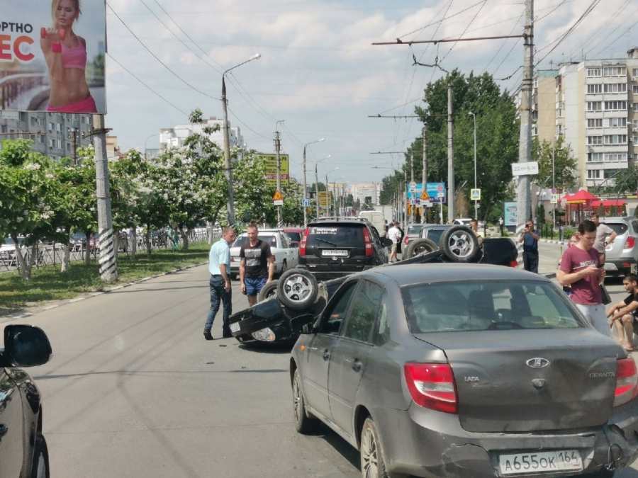 В Энгельсе после ДТП «Приора» перевернулась на крышу