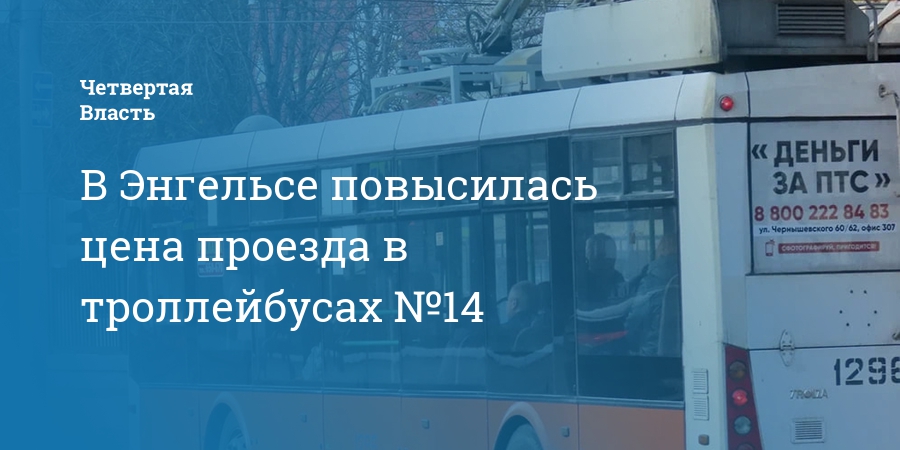 С сегодняшнего дня, 1 апреля, в Энгельсе Саратовской области цена проезда на троллейбусном маршруте №14 повысилась до 29 рублей (рост на 2 рубля). Как сообщили в администрации района, цена проездного билета при этом останется прежней.