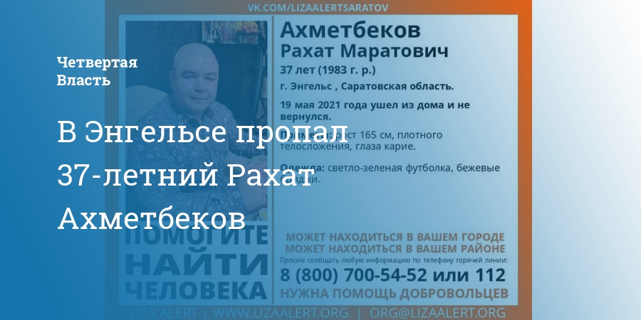 В Энгельсе пропал пропал 37-летний Рахат Ахметбеков. Об этом сообщают волонтеры поискового отряда «ЛизаАлерт».