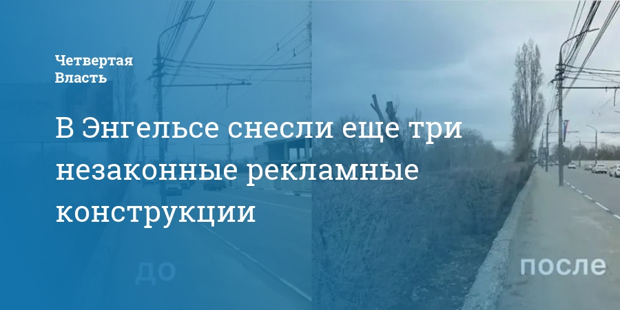 В Энгельсе Саратовской области на въезде в город демонтировали еще три незаконных рекламных конструкции. Об этом сообщает глава администрации района Максим Леонов.