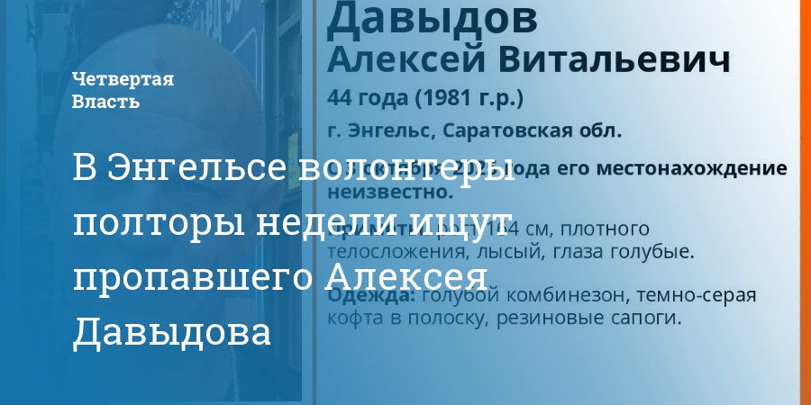 В Энгельсе волонтеры полторы недели ищут пропавшего Алексея Давыдова