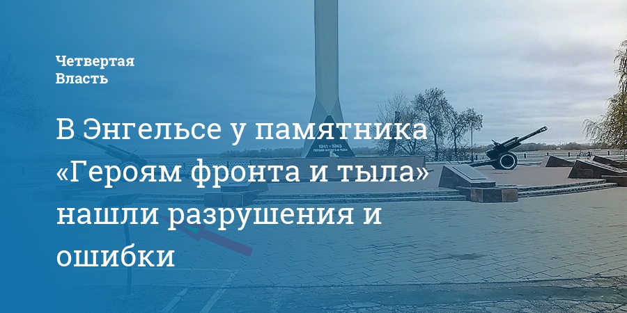В Энгельсе Саратовской области памятник «Героям фронта и тыла 1941-1945 гг.» имеет разрушения и орфографические ошибки. О наплевательском отношении к объекту, символизирующему Победу в Великой Отечественной войне, рассказал в соцсетях местный житель.