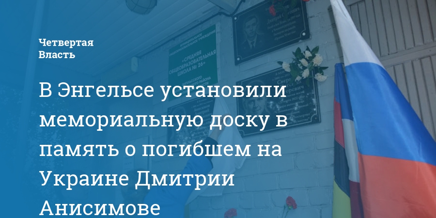 Сегодня, 6 сентября, в Энгельсе Саратовской области доской памяти в стенах школы № 24 увековечили имя погибшего в спецоперации на Украине Дмитрия Анисимова. Об этом сообщили в пресс-службе районной администрации.
