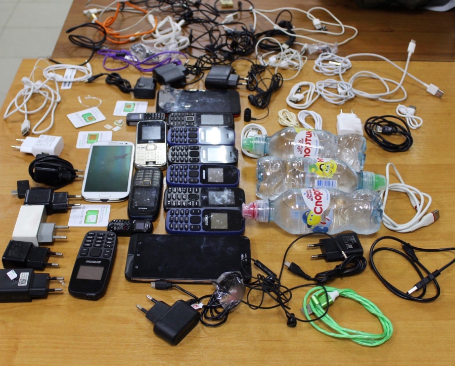 По информации ведомства, сотрудники ИК пресекли попытку доставки 8 свертков, внутри которых нашли 15 мобильных телефонов, 4 сим-карты, 22 usb-кабеля, 4 блока питания, 5 гарнитур, а также бутылки со спиртосодержащей жидкостью.