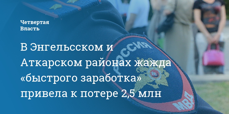 В Энгельсском и Аткарском районах жажда «быстрого заработка» привела к потере 2,5 млн