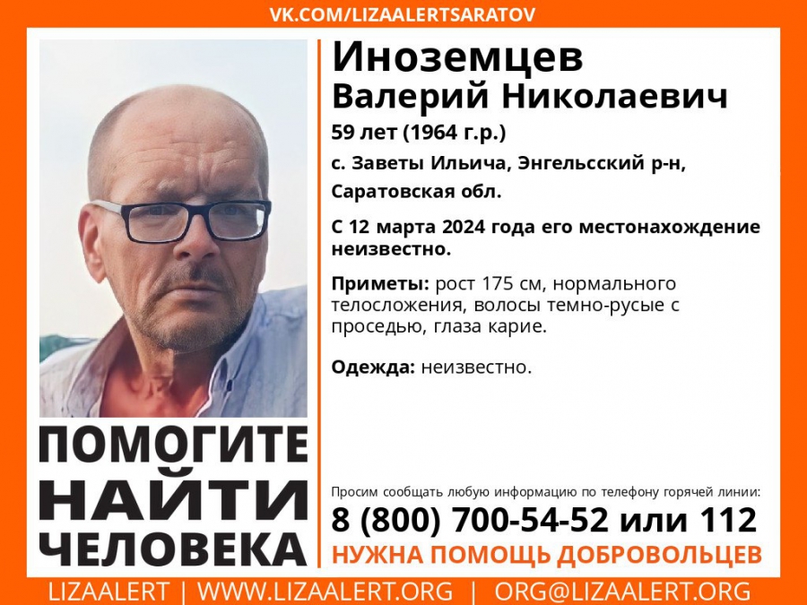 В Энгельсском районе ищут 59-летнего Валерия Иноземцева