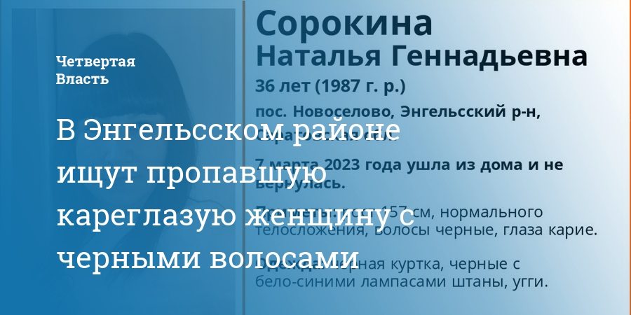 В Энгельсском районе ищут пропавшую кареглазую женщину с черными волосами