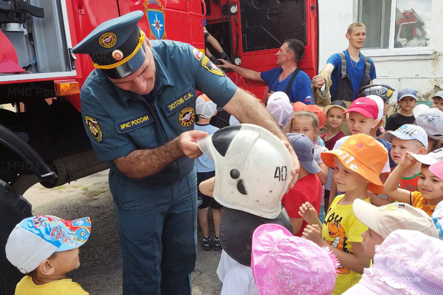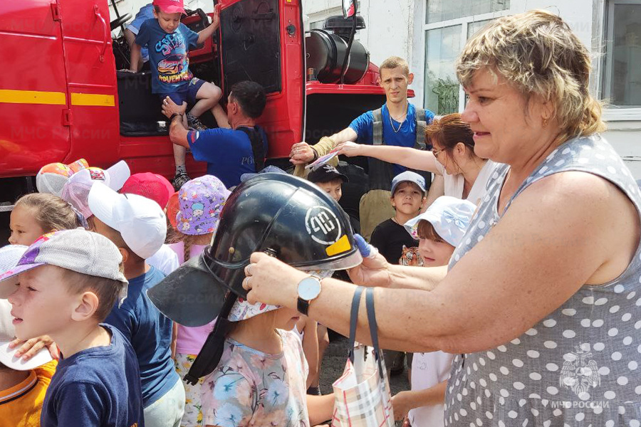 После эвакуации пожарные разрешили детям рассмотреть служебный транспорт, сфотографироваться и примерить боевую одежду.