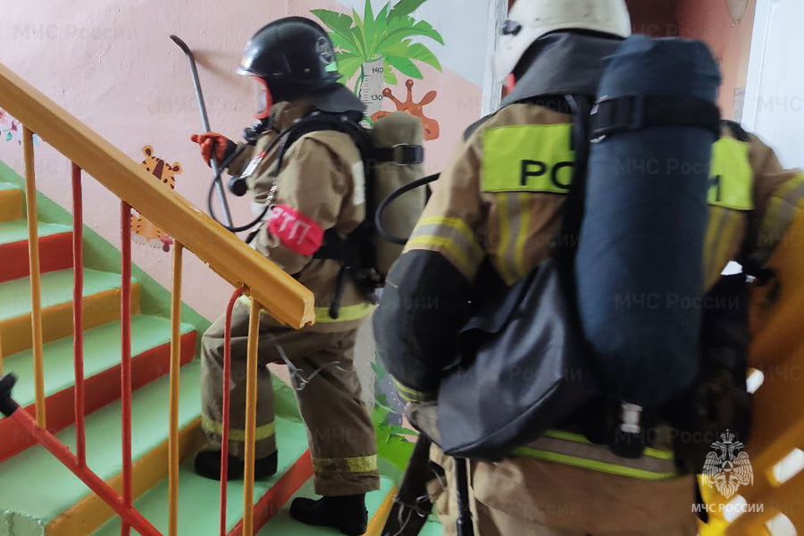 По легенде, пожар площадью 10 кв. м возник на 2 этаже в кабинете заведующей детсада «Звездочка». При этом 2 человека будто не смогли самостоятельно покинуть здание из-за сильной задымленности. Во время учений задействовали все оперативные службы города.