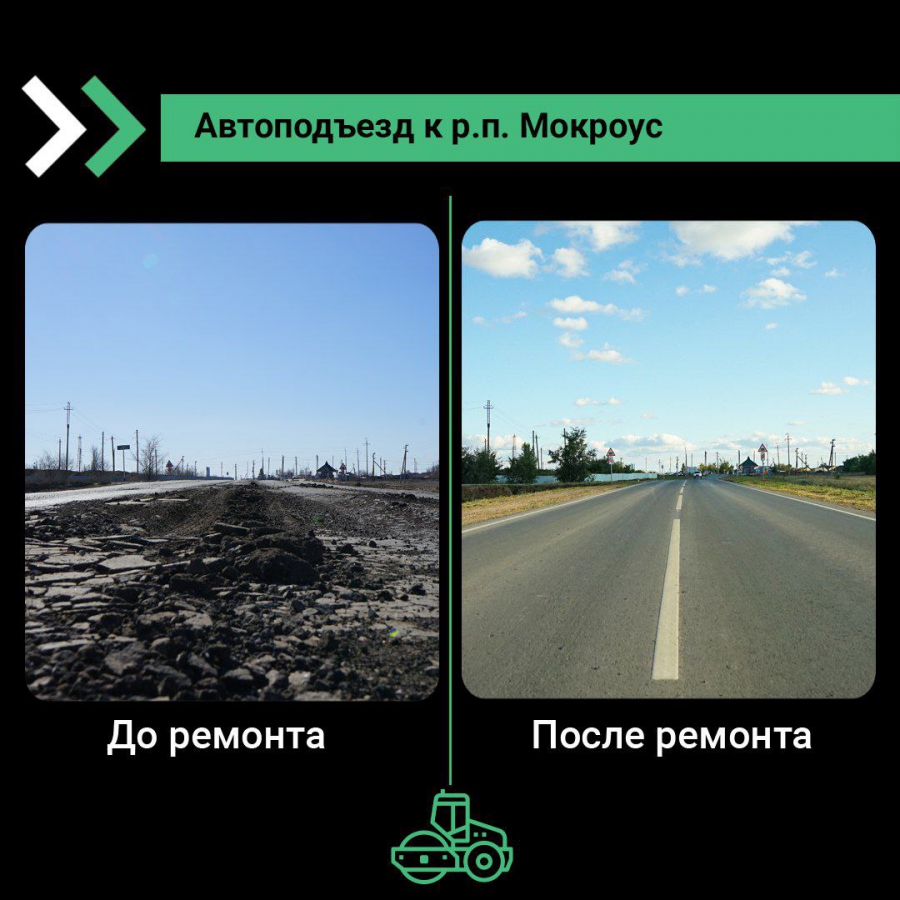 Также в текущем году в Федоровском районе отремонтировали еще две дороги: автоподъезд к Мокроусу и дорога внутри самого населенного пункта – по улицам Совхозная и Степная. Последняя является частью маршрута «Мокроус — село Калдино». Отремонтированный участок дороги ведет, в том числе, к детскому саду.