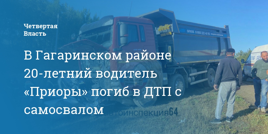 В Гагаринском районе 20-летний водитель «Приоры» погиб в ДТП с самосвалом