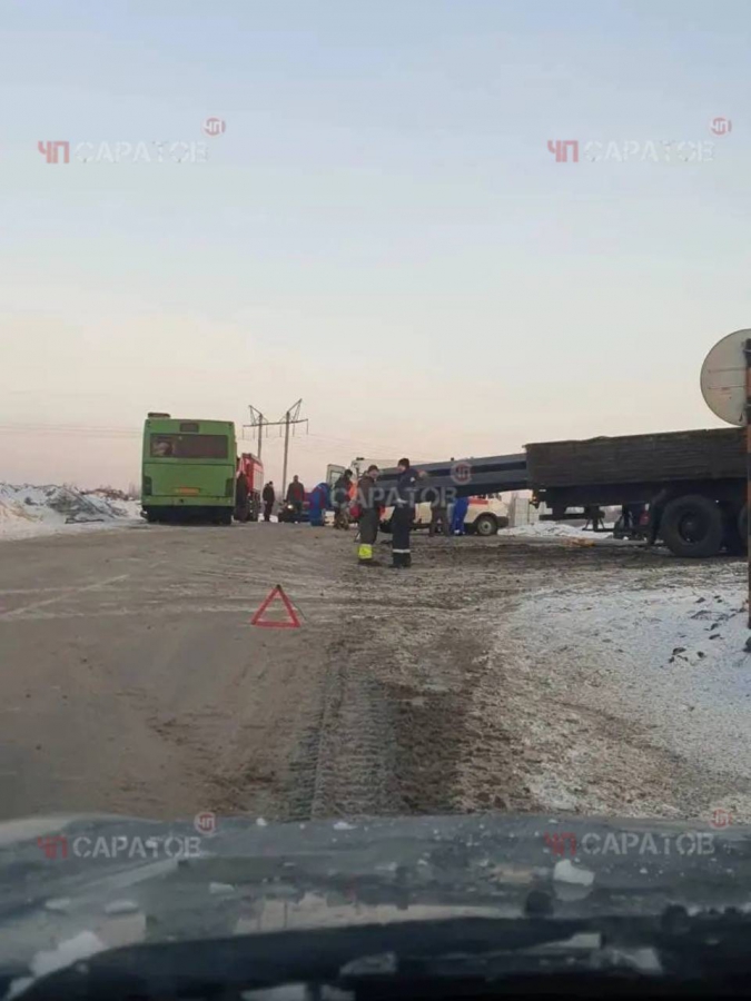 Дорожно-транспортное происшествие случилось около 6.40 на 11 километре автодороги «Саратов – Красный Текстильщик». По предварительной информации, там столкнулись автобус «МАЗ», которым управлял мужчина 1973 г. р., и грузовик «Скания» под управлением водителя 1982 г. р. В результате аварии пострадала пассажирка 1973 г. р. из автобуса, ее госпитализировали. Судя по фото от очевидцев, у автобуса серьезно повреждена передняя часть.