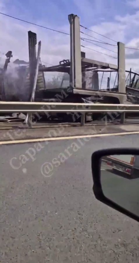 Предварительно, ДТП случилось около 12.00 на объездной дороге недалеко от села Еремеевка. Участниками якобы стали два автовоза: один пустой, второй с машинами. После этого транспортные средства воспламенились, они полностью уничтожены огнем.