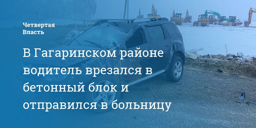 В Гагаринском районе водитель врезался в бетонный блок и отправился в больницу