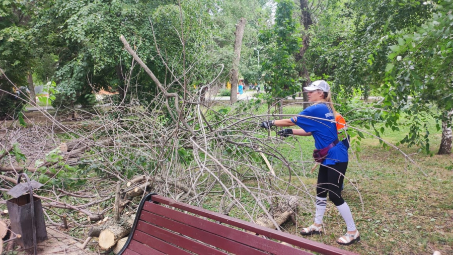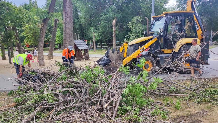 «На месте работает измельчитель. Крупные порубочные остатки с помощью спецтехники загружаем в «КамАЗ» и вывозим за территорию. Параллельно проводится полив зеленых территорий», - пояснила мастер участка Людмила Сухарева.