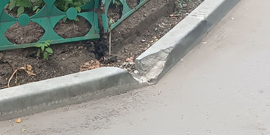 Единственной ложкой дегтя стал расколотый бортовой камень на въезде во двор. Вероятнее всего, он пострадал от наезда техники, и теперь нуждается в ремонте. В остальном бортовой камень не пострадал. Установлен он ровно, без уступов, в плане и профиле сколов и трещин не имеет.