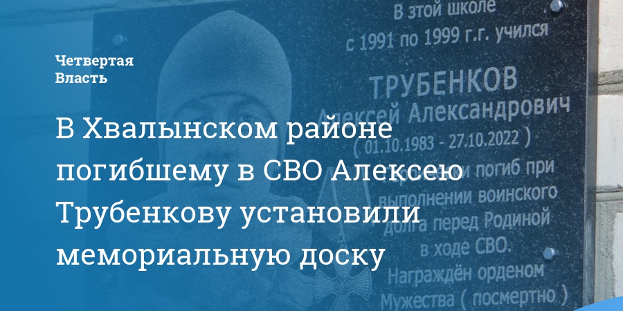 В Хвалынском районе погибшему в СВО Алексею Трубенкову установили мемориальную доску