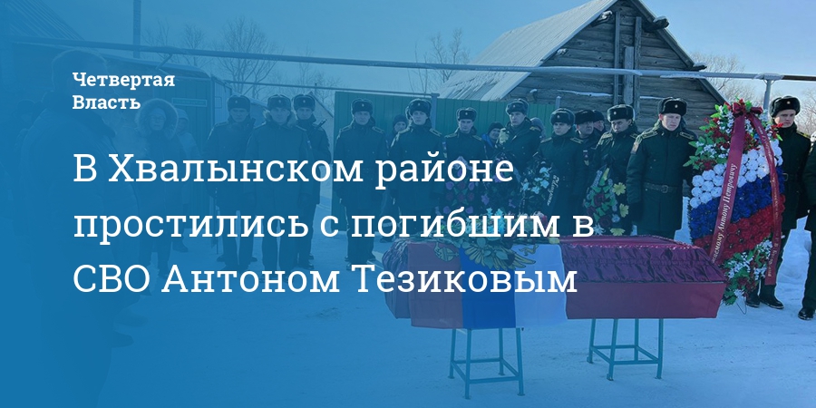 Вчера, 6 февраля, в Хвалынском районе Саратовской области простились с погибшим в ходе специальной военной операции бойцом ЧВК «Вагнер» Антоном Тезиковым. Об этом сообщил глава района Алик Сабрига.