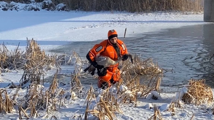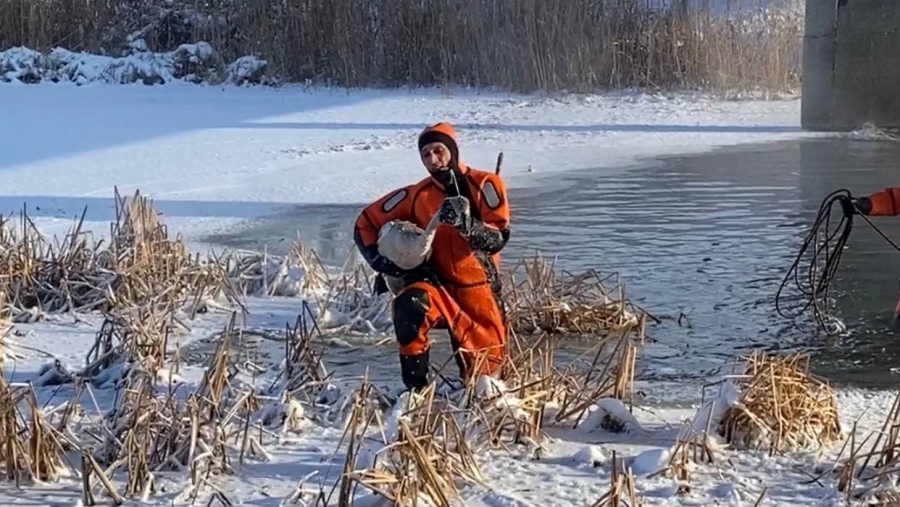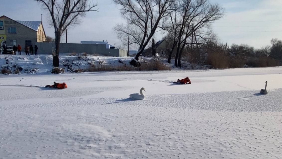 В Калининске Саратовской области из замерзшей реки Баланда вызволили двух лебедей, еще одна птица улетела. Об этом «Четвертой Власти» сообщили в региональной службе спасения.