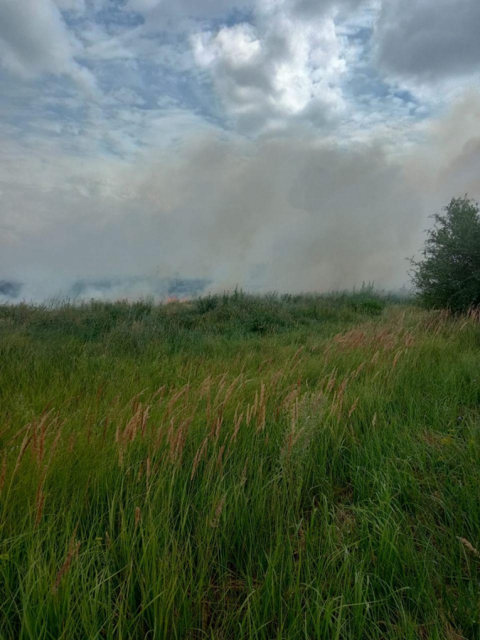 Возгорание произошло около 14.15 в районе элеватора на окраине города, там вспыхнуло поле. На место выехала пожарно-спасательная часть №42, для тушения огня потребовалось 2 единицы техники. Уточняется, что выгорело около 25 гектаров травы, повреждено сено.