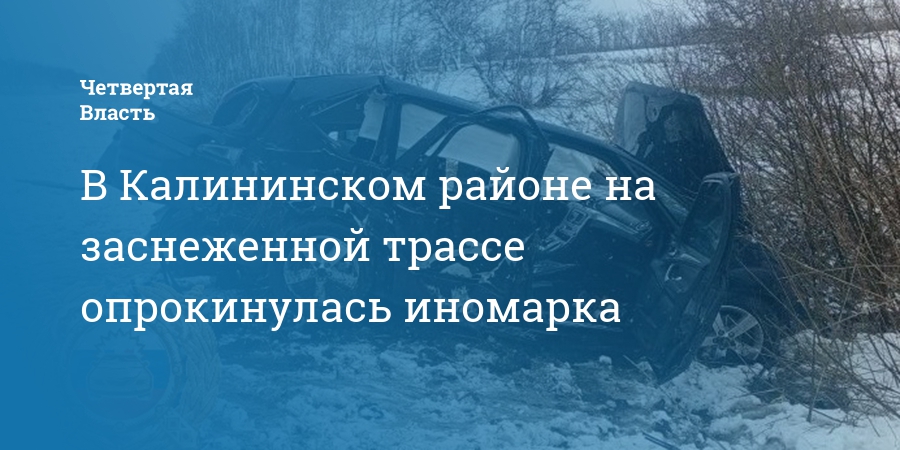 В Калининском районе на заснеженной трассе опрокинулась иномарка