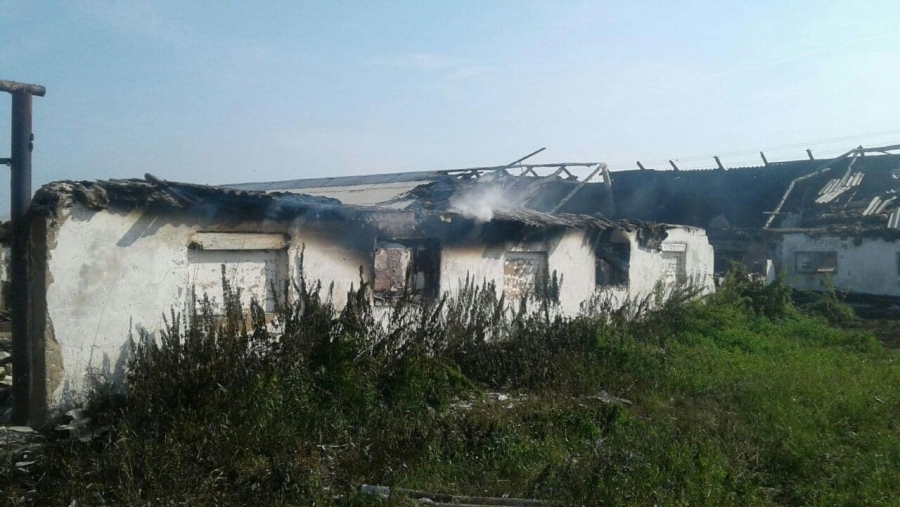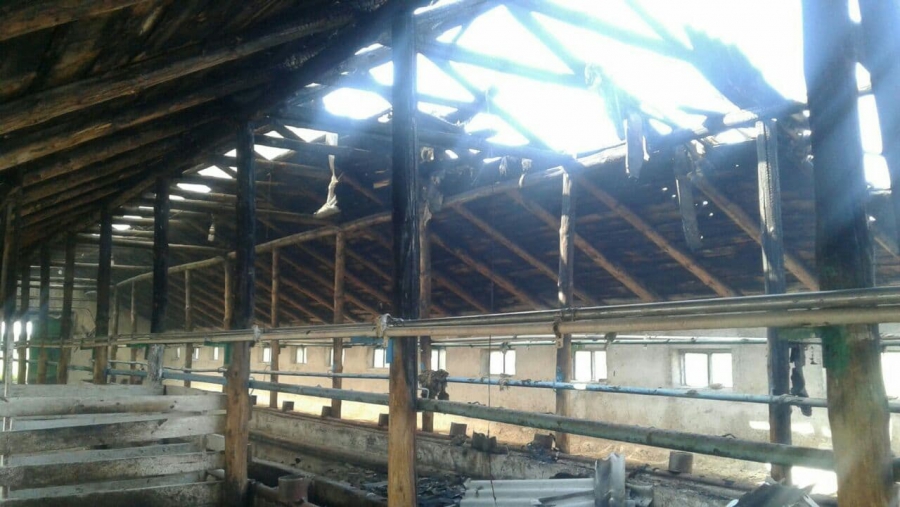 Сигнал о пожаре поступил на пульт «01» 31 июля в 00.21. Возгорание случилось в селе Новотепловка. На место выезжали 2 пожарных расчета, у коровника горела кровля на площади 960 кв. метров. Во время пожара в здании животных не было.