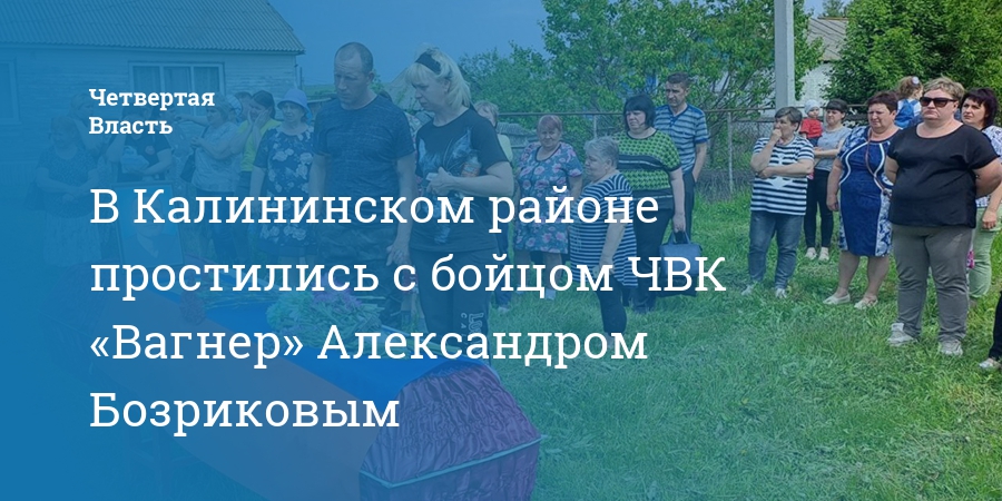 Сегодня, 26 мая, в Калининском районе Саратовской области прошла церемония прощания с бойцом ЧВК «Вагнер» Александром Бозриковым. О печальном известии сообщили в районной администрации.