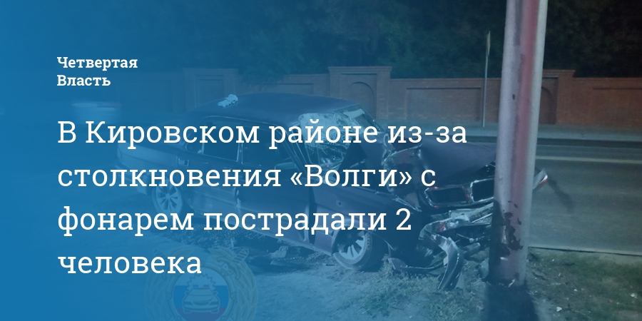 В Кировском районе из-за столкновения «Волги» с фонарем пострадали 2 человека