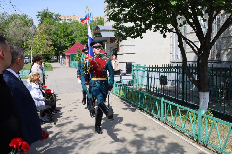 Память участника СВО почтили минутой молчания и возложили к мемориальной доске цветы.