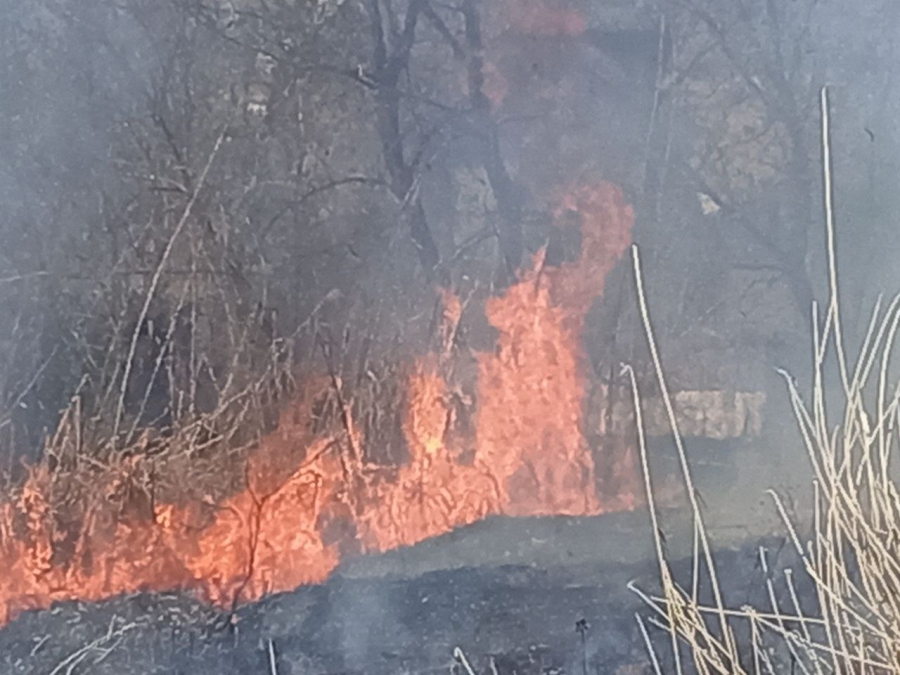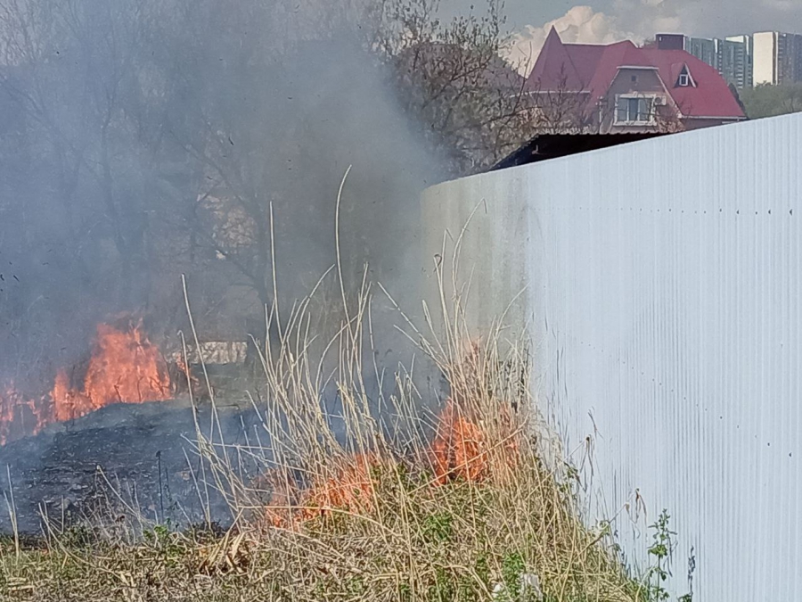 Очаг возгорания расположен неподалеку от улицы Городской поселка Мирный. Граждане пытались сбить огонь и вызвали пожарную службу. Причины происшествия пока неизвестны. Площадь возгорания уточняется. Отметим, что по фото видно, как от огня пострадал металлический забор частного домовладения.