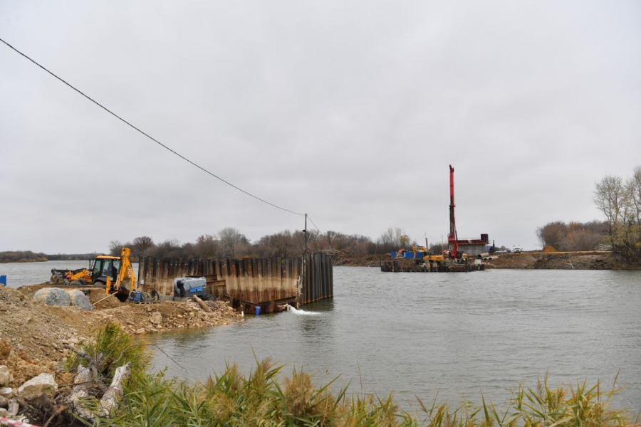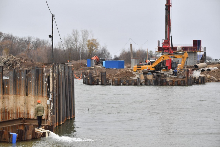 По его словам, в настоящее время там ведется бетонирование опор и забивка шпунта. В целом длина сооружения вместе с подходами составит 1,1 км.
