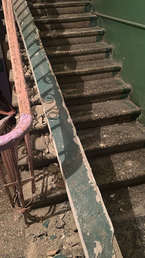 В июле этого года в этом доме обрушилась часть лестничного пролета между первым и вторым этажами. К счастью, тогда в результате ЧП никто не пострадал.