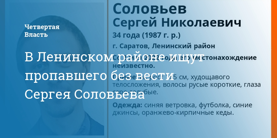 В Ленинском районе ищут пропавшего без вести Сергея Соловьева