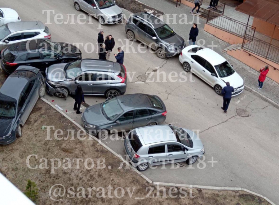 Сегодня, 12 ноября, в Ленинском районе Саратова неосторожный водитель повредил несколько припаркованных машин. Фотографиями очевидцы поделились в телеграм-канале «Саратов. Жесть» соцсети «ВК».