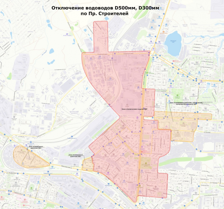 Кроме того, в зоне пониженного давления с возможным прекращением холодного водоснабжения останутся абоненты: