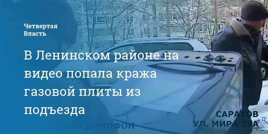 «В Саратове из дома на улице Мира 29А двое неизвестных забрали из подъезда газовую плиту и не вернули. Хозяин плиты собирался отвезти ее на дачу, но не успел. Мужчины попали в объективы камер «Умного домофона». Возможно, это видео заставит их вернуть украденное на место», - написала местная жительница Ирина Сергеева.