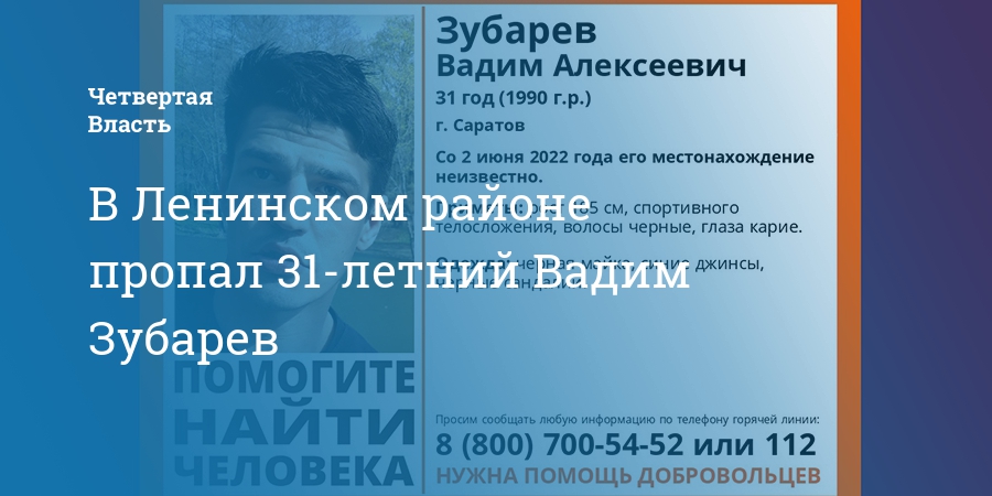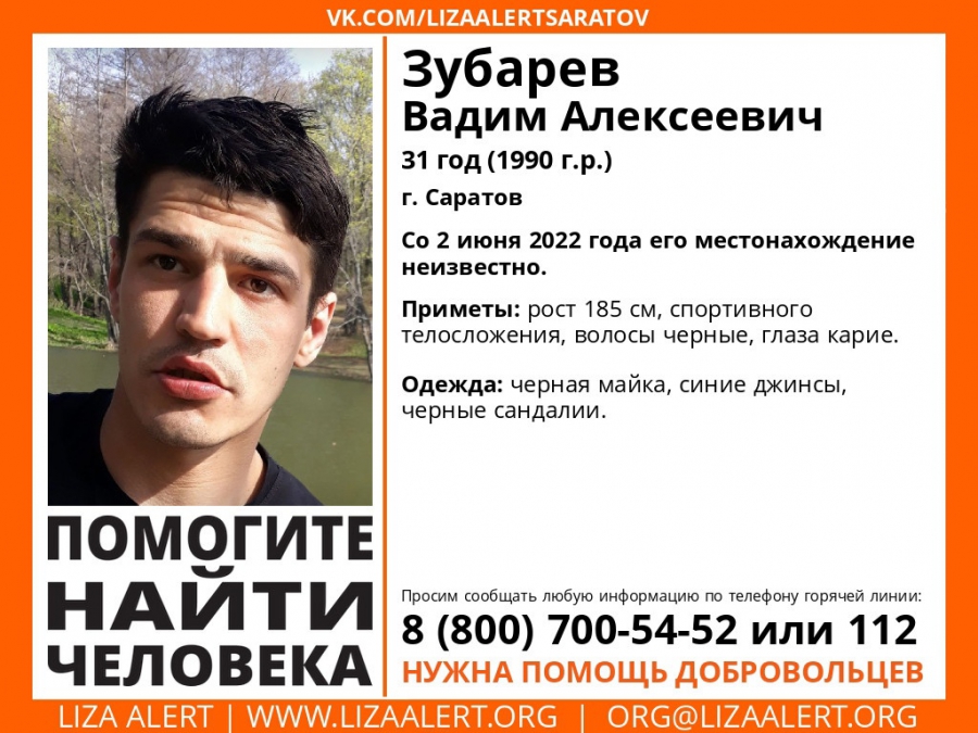 В Ленинском районе Саратова пропал 31-летний Вадим Зубарев. Об этом сообщают поисковики отряда «Лиза Алерт».