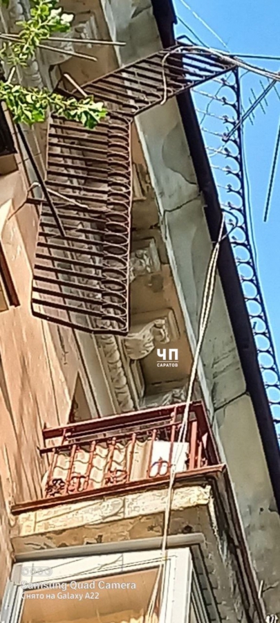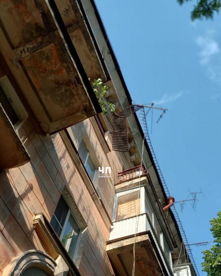 В Ленинском районе Саратова на крыше 5-этажного дома обнаружили металлическую конструкцию, которая может упасть на прохожих. Информацию об этом разместили в группе «ЧП Саратов» соцсети «ВКонтакте».