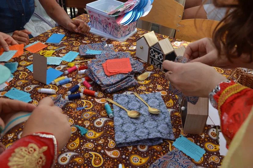 Для саратовцев была организована работа нескольких площадок и раздача бесплатного мороженого. Так, в зоне кафетерия прошли мастер-классы от представителей национальных объединений по каллиграфии, повязыванию мусульманского платка, плетению косичек и бисером, изготовлению разноцветных кисточек для чайных пакетиков, организована фотозона. В зоне кинозала участники послушали казацкие песни и посмотрели фланкировку (танец с саблями), армянский танец «Кочари» и игру на национальном казахском инструменте домбре.